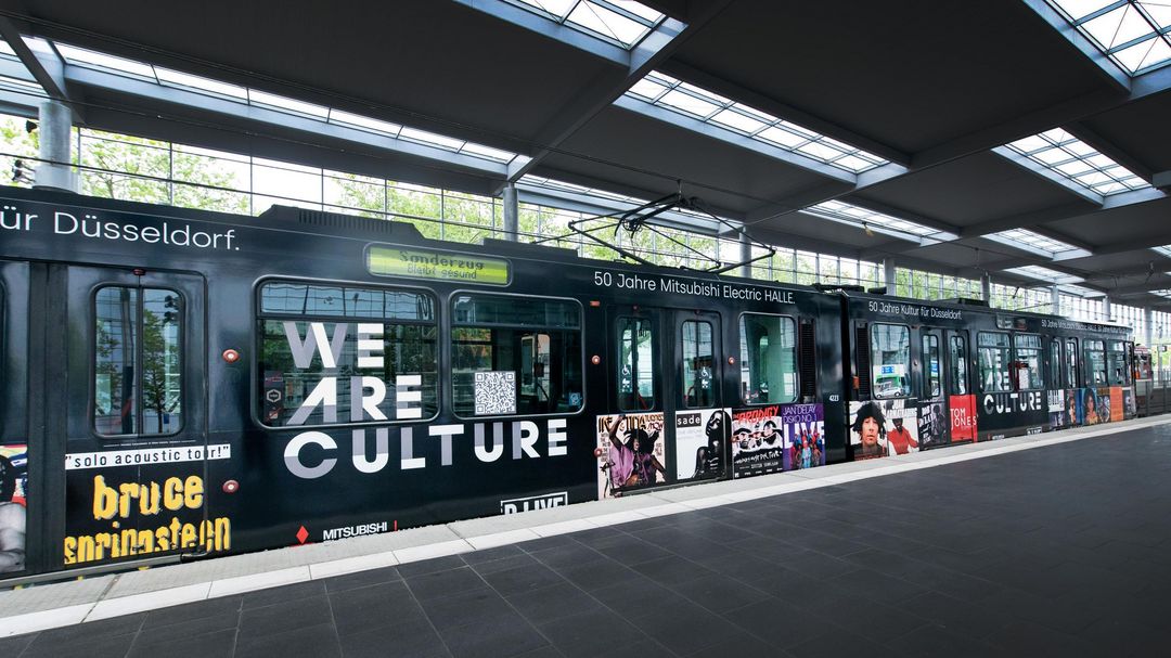 Um dieses Jubiläum gebührend zu feiern, ist gestern der Startschuss für die Kampagne „We Are Culture – 50 Jahre Mitsubishi Electric HALLE. 50 Jahre Kultur für Düsseldorf.“ gefallen. Und das mit einem ganz besonderen Highlight: Einer Bahn mit Highlights aus 50 Jahren MEH, die ab sofort durch das Düsseldorfer Stadtgebiet fährt.