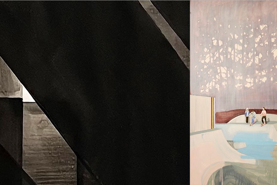 Hermida konstruiert aus seinen Beobachtungen Flächen und Volumen, die er in verschiedenen Farbflächen auf die Leinwand setzt. / Foto (c): Sebastián Hermida, Subconscious on dream, 2023