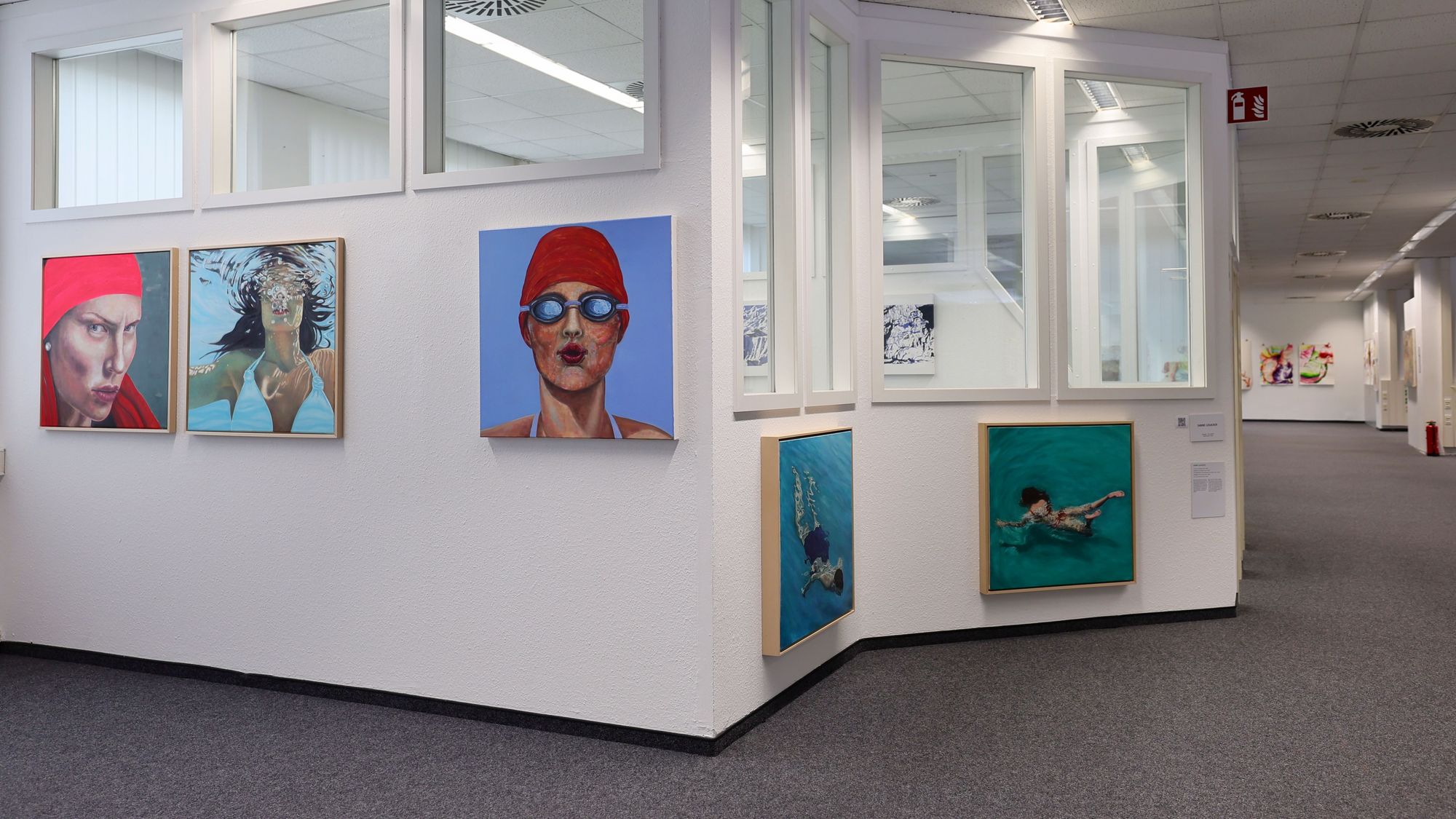 Eine der beteiligten Künstlerinnen ist Aline Regese, Malerin und Vorstand des Vereins Düsseldorfer Künstlerinnen (VdK), die gemeinsam mit der GEDOK A46 das Projekt mit auf den Weg gebracht hat. In ihren farbintensiven, figurativen Aquarellen erforscht sie, „was Menschen miteinander verbindet – und was zwischen ihnen unausgesprochen bleibt.“