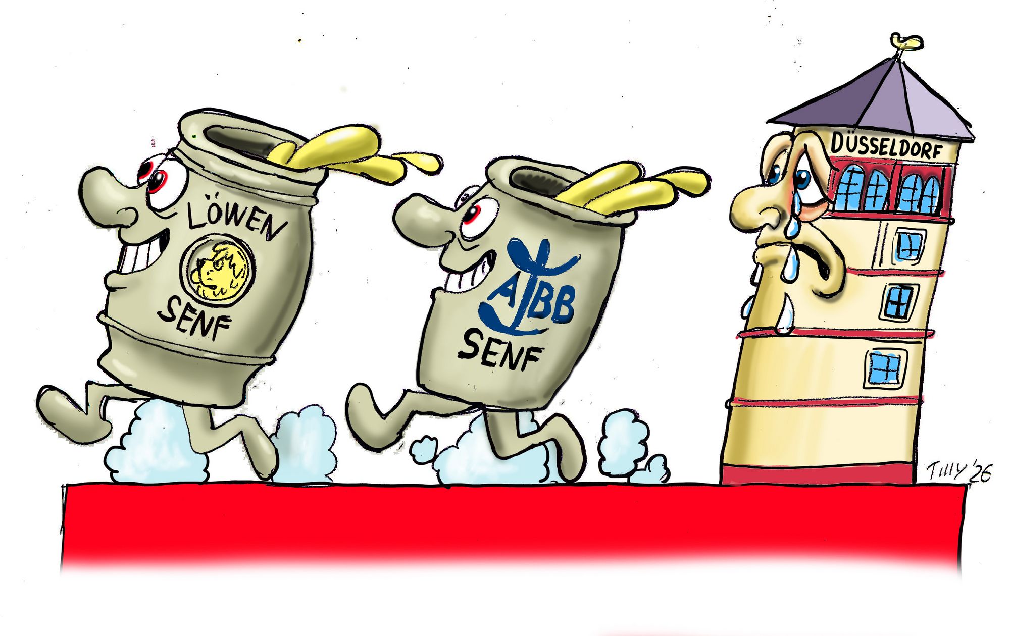 Lokalkolorit: Der Schlossturm weint – eine Düsseldorfer Pointe zwischen Tradition und Veränderung. / Entwürfe: Jacques Tilly / Comitee Düsseldorfer Carneval.