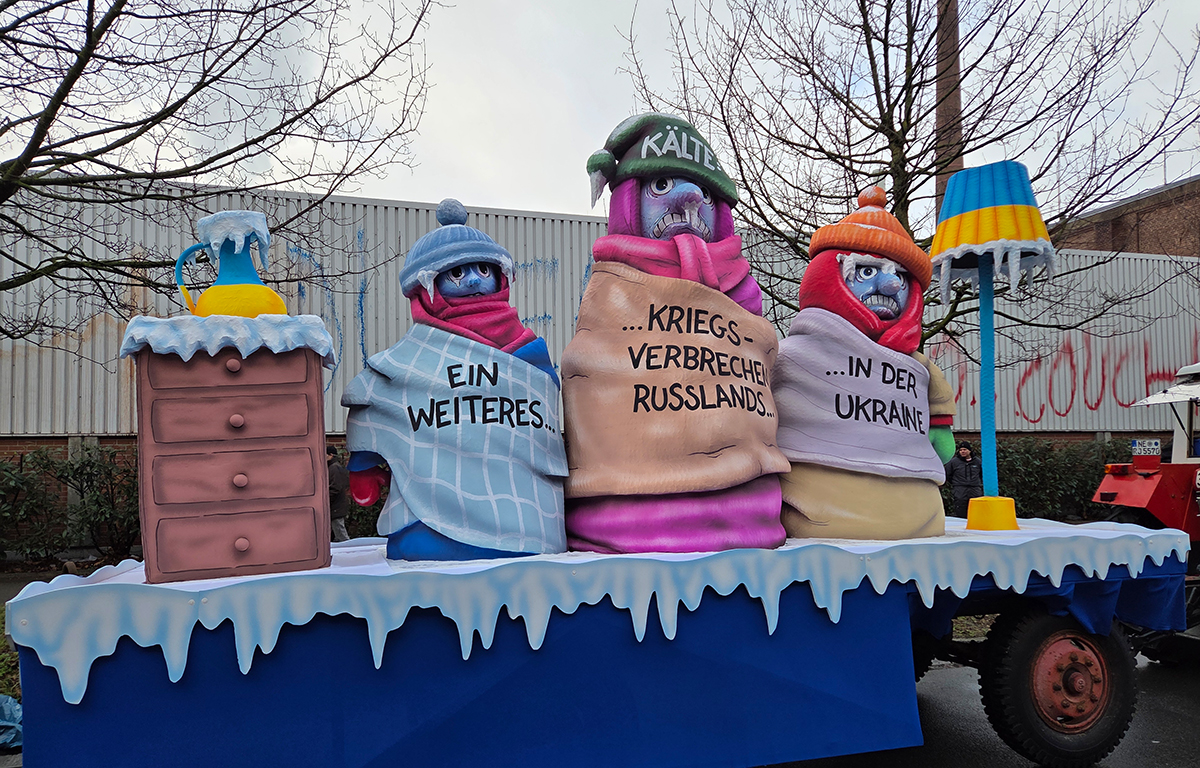 Hinter den Motiven steht in diesem Jahr auch ein politischer Hintergrund: Gegen Jacques Tilly läuft in Russland ein Strafverfahren, in dem ihm vorgeworfen wird, „Falschinformationen über die russische Armee“ verbreitet und staatliche Organe verunglimpft zu haben – nach russischem Recht drohen Geldstrafe oder eine Freiheitsstrafe von bis zu zehn Jahren. In Düsseldorf wurde das öffentlich als Angriff auf Meinungs- und Kunstfreiheit eingeordnet: Das Comitee Düsseldorfer Carneval und Teile der Stadtgesellschaft verweisen dabei ausdrücklich auf Artikel 5 des Grundgesetzes. Zusätzlich kommt Rückendeckung aus der Kulturszene: Die Tonhalle Düsseldorf kündigte für Ende März einen Solidaritätspreis für Tilly an – als Zeichen gegen die Verfolgung von Kunst und Satire.