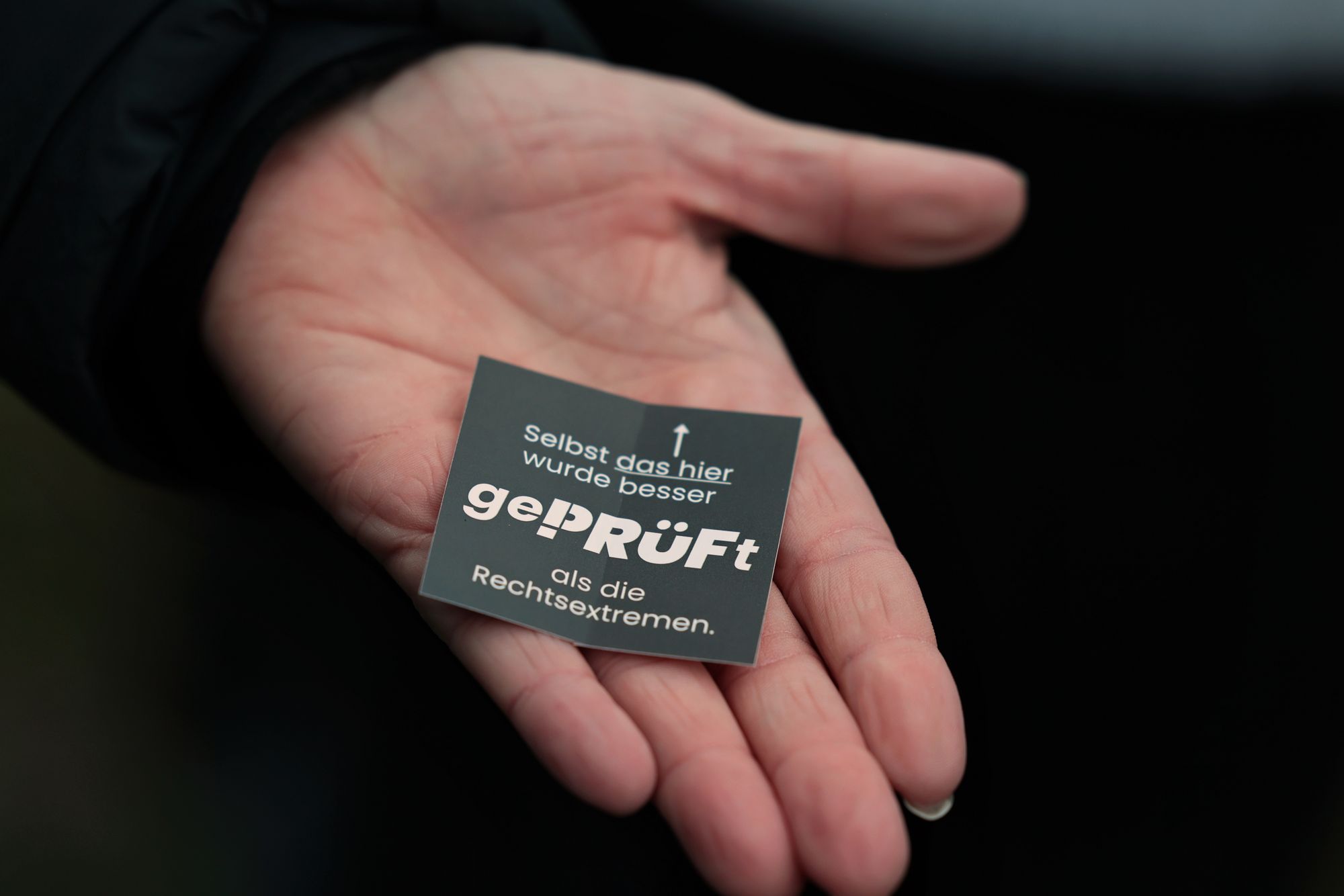 Sticker: "Selbst das hier wurde besser gePRÜFt als die Rechtsextremen." / Foto: Klaus von JackelmannStempelkarte „Geprüfte Demo-Teilnahmen". / Foto: Klaus von Jackelmann
